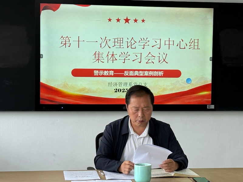 2025年7月7日,经济管理系党总支组织开展第十一次理论学习中心组集体学习,通过观看专题视频、学习典型案例、开展警示教育研讨等形式,深化思想认识,强化纪律规矩意识。理论学习中心组全体成员参加学习。会议由系党总支书记张殿福同志主持。
