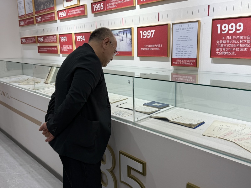 活动伊始,全体人员首先参观了院史馆。在讲解员的引导下,党员教师、同学们依次走过记录学校发展历程的各个展区。一幅幅珍贵的历史图片、一件件厚重的实物档案、一段段详实的文字说明,生动再现了学校自创立以来,扎根北疆、艰苦奋斗、立德树人的光辉岁月。大家深刻感受到学院发展与国家命运、民族复兴紧密相连,一代代农职人为服务地方经济社会发展、促进民族团结进步所做出的卓越贡献。参观过程中,党员教师、同学们不时驻足交流,对学院深厚的文化底蕴和取得的辉煌成就表示由衷赞叹,增强了作为农职人的归属感与自豪感。