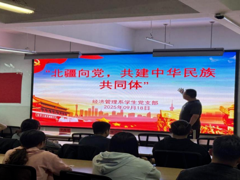为深入学习贯彻党的精神,筑牢学生党员的理想信念,凝聚共建中华民族共同体的磅礴力量,经济管理系党支部于2025年09月18日在实验楼402,召开以“北疆向党,共建中华民族共同体”为主题的研讨学习。本次参加大会的人员有经济管理系学生第一党支部宣传委员李海星老师、组织统战委员张己炳老师以及经济管理系全体学生党员。