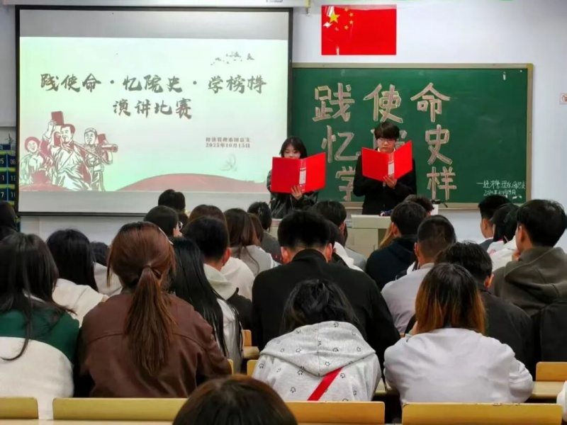 金秋十月,硕果盈枝;薪火相传,使命在肩。2025年10月15日19时,为深挖院史中的精神富矿、弘扬榜样的示范力量,经济管理系以“践使命·忆院史·学榜样”为主题的演讲比赛在教学楼A302隆重举行。共同开启一场“回望初心、致敬榜样、践行使命”的精神对话。