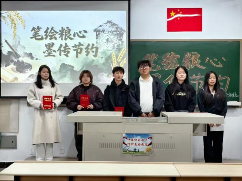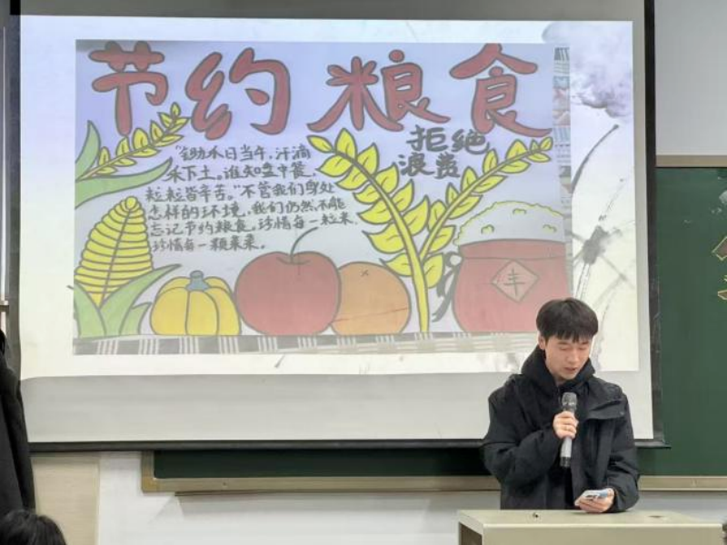 评审阶段,由学生代表组成的评委组,从主题契合度、创意设计、内容表达等维度对作品进行综合评定,最终评选出:一等奖2023级工商管理班张蕊,二等奖2025级大数据与会计本科班沙柳儿,三等奖2024级市场营销教育班王嘉起。在作品展示环节,大家在欣赏作品的同时,热烈讨论节约粮食的重要性,形成了“人人谈节约、事事讲节约”的良好氛围。