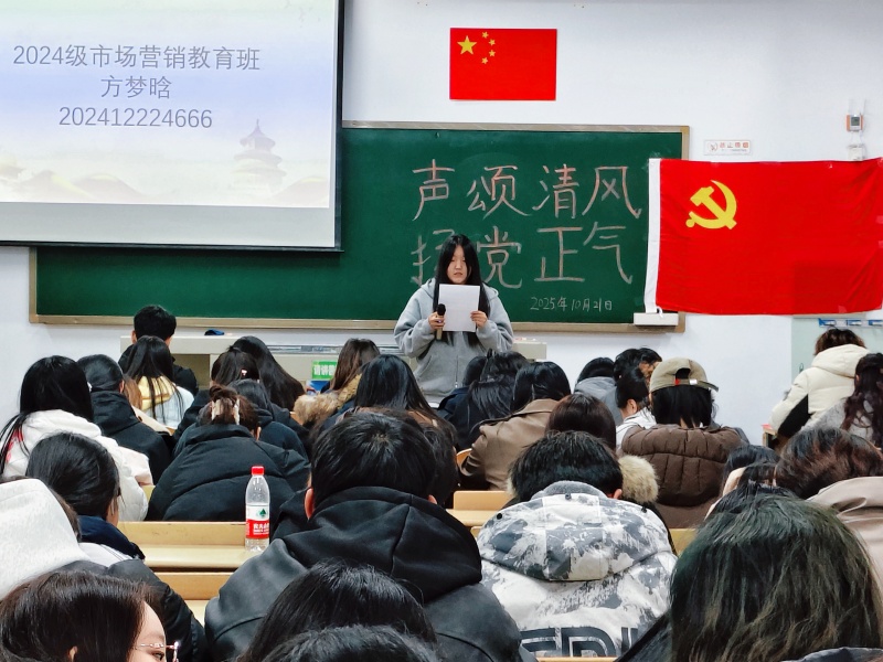 为深入推进党风廉政建设向纵深发展,进一步推动廉洁文化建设走深走实、入脑入心,让廉洁理念可感可知、浸润人心,经济管理系于2025年10月21日19时举办了以“声颂清风,扬党正气”为主题的朗诵比赛。我系同学踊跃报名、积极参与,深情歌颂清正廉洁的高尚品格,热情弘扬风清气正的党风政风,共同在声情并茂的演绎中感受廉洁文化的独特魅力,接受廉洁精神的深刻洗礼。