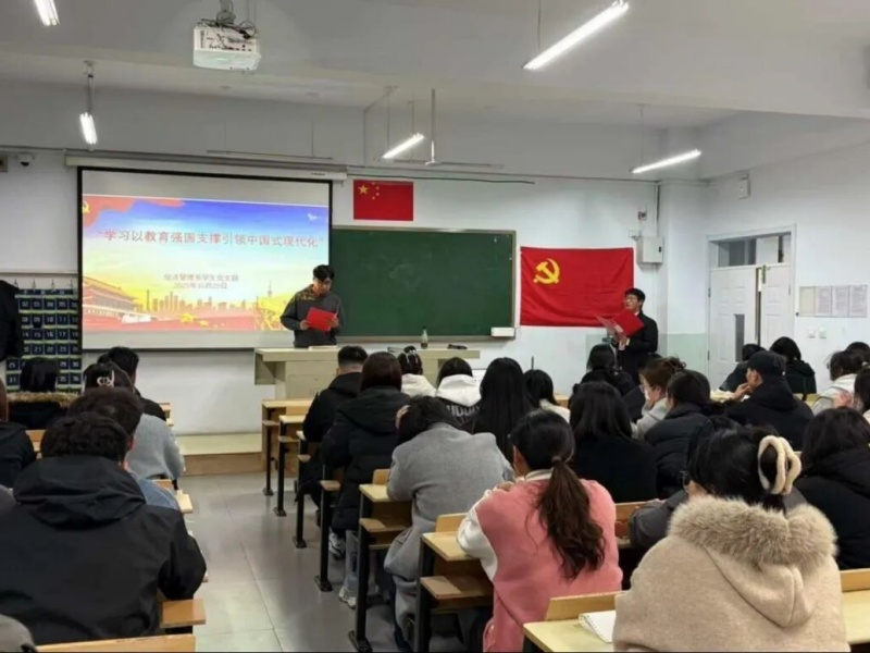 为深入贯彻落实关于教育强国建设的重要论述,精准把握教育在中国式现代化进程中的战略定位,经济管理系学生党支部于2025年10月29日于教学楼A302组织召开“学习以教育强国支撑引领中国式现代化建设”专题研讨会。围绕“教育如何为中国式现代化提供坚实支撑”展开学习与交流。到会人员有经济管理系学生第一支部组织统战委员张己炳老师以及全体学生党员。