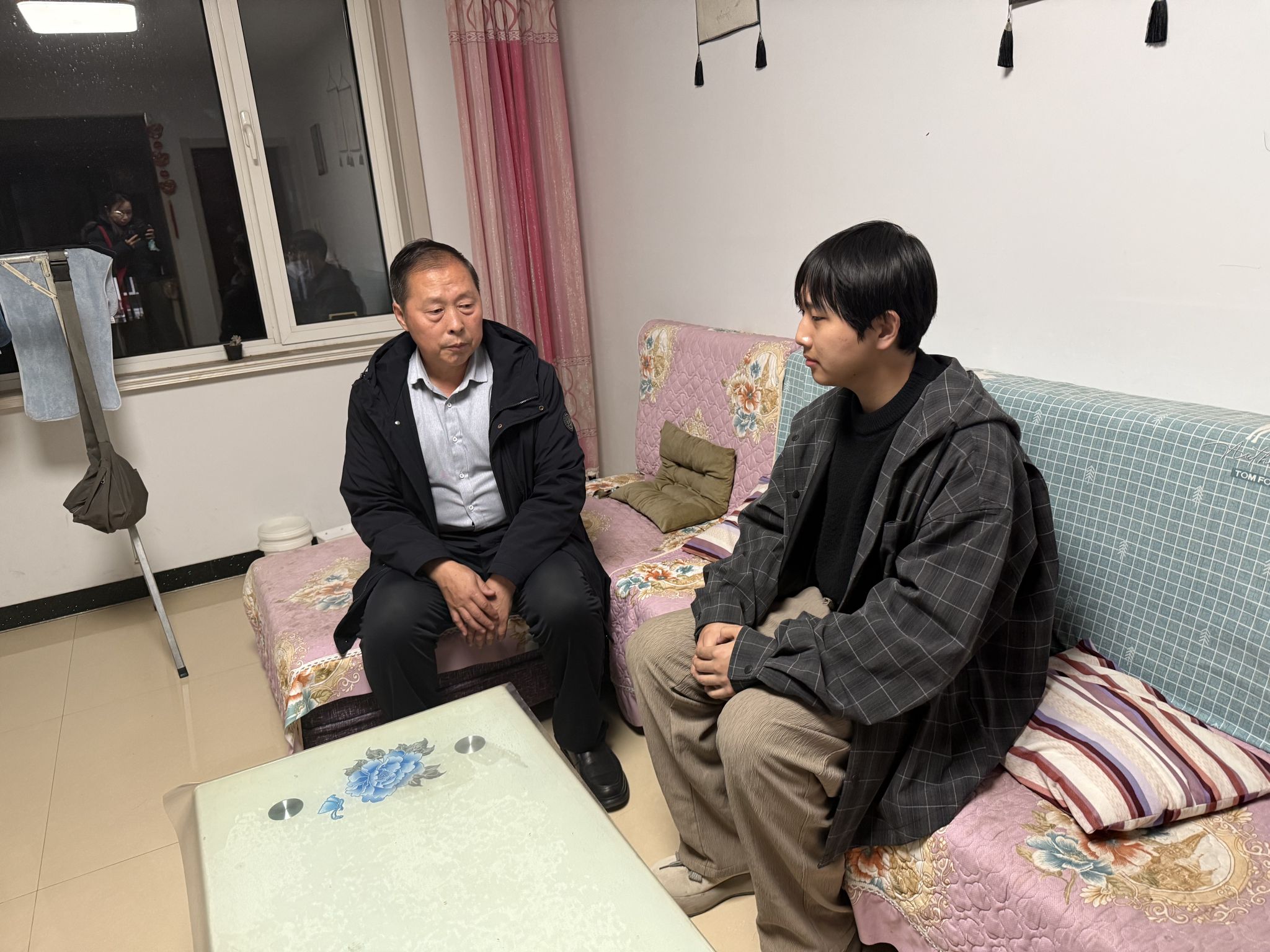 每到一户,家访小组都与学生及家长围坐一堂,促膝交流。张殿福书记详细询问学生的家庭生活作息、居家学习环境及思想动态,向家长全面介绍我系办学理念、育人举措以及学生的学习表现,认真倾听家长对我系工作的意见及建议。针对走读学生的特殊性,胡老师与学办辅导员老师重点叮嘱家长关注孩子上下学交通安全、居家用电用火安全及网络文明使用等问题,培养自主学习能力和良好生活习惯。