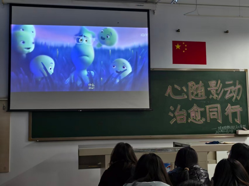 活动伊始,负责人向在场同学介绍了影片,随着银幕亮起,主人公乔伊追逐音乐梦想却意外经历灵魂奇遇的故事徐徐展开。影片以细腻的笔触、奇幻的设定,探讨了“人生的意义究竟是什么”这一深刻命题,让同学们在乔伊与二十二的灵魂碰撞中,重新审视梦想与平凡的关系,体会“活在当下”的珍贵。