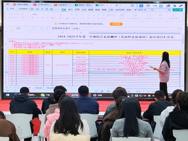 会议明确,综合测评成绩由学业成绩、基础性素质成绩和发展性素质成绩三个部分构成,围绕综合素质测评的重要意义、制度文件、评分指标、材料审核、信息录入、时间安排及注意事项等内容进行系统讲解。老师们结合往年工作实际,对测评流程中的关键环节、常见问题、易错事项逐一梳理说明,细致解答了与会人员提出的疑问,确保大家准确把握政策要求、熟练掌握操作规范。