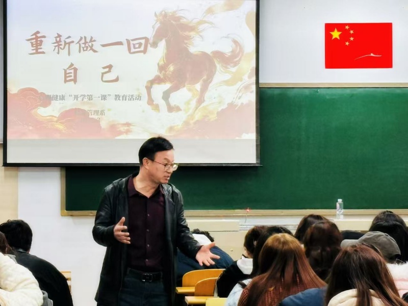 为进一步加强学风建设,引导同学们端正学习态度、明确奋斗目标、重拾初心使命,2026年3月3日19时,经济管理系学风教育活动在新教学楼A103教室顺利举行。本次活动以“重新做一回自己”为话题,由经济管理系副书记兼副主任曹睿亮老师主讲,经济管理系辅导员杨丹老师及2025级全体同学参加。