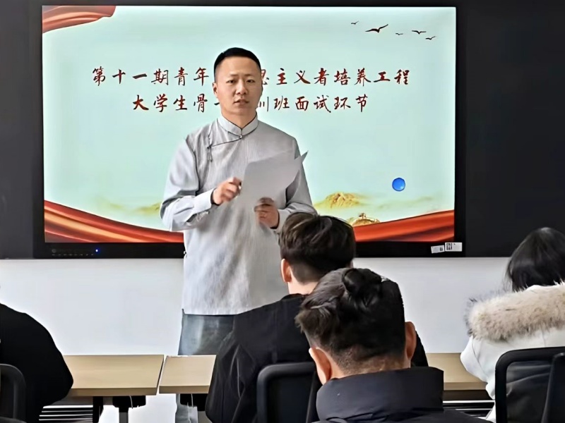 2026年3月9日,经济管理系第十一届青年马克思主义者培养工程大学生骨干培训班面试在实验楼302顺利开展。经济管理系学办副主任胡宇飞老师亲临现场,对本次面试选拔工作全程悉心指导,确保选拔工作规范有序、落地见效。