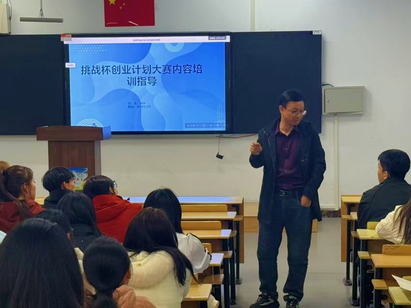 为深化创新创业教育改革,助力参赛团队精准备赛、精准发力,2025年3月10日19时,经济管理系在教学楼C栋101教室开展“挑战杯”大学生创业竞赛专题培训指导活动,系副书记兼副主任曹睿亮老师担任主讲嘉宾,为参训学生带来全方位、系统化的备赛指导。