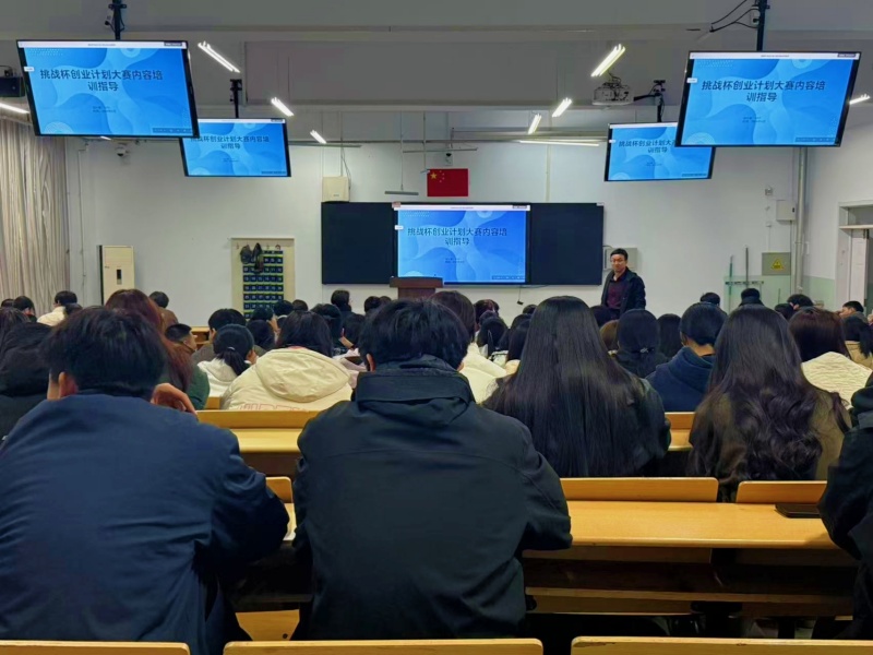 培训现场,曹老师结合自身丰富的赛事指导经验与评审视角,紧扣“挑战杯”赛事核心要求展开深度解析,重点围绕国家战略导向的政策要求与市场落地可行的现实刚需两大核心维度,为学生梳理备赛关键思路。他从商业计划书规范撰写、项目商业模式创新构建、市场数据精准分析及路演答辩技巧优化等方面入手,通过典型案例拆解,清晰讲解如何让项目紧扣国家战略、贴合时代热点,同时立足真实市场痛点,打造具备落地性与竞争力的创业方案。