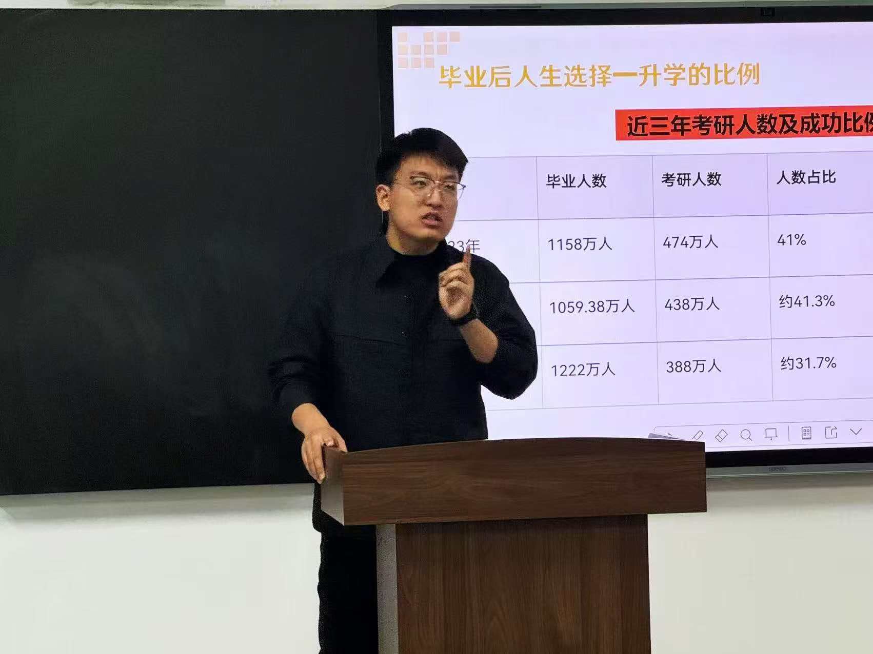 讲座聚焦当前就业形势与学生实际需求,以详实数据和生动案例为依托,围绕职业规划核心展开系统性讲解。主讲嘉宾高宏宇重点针对考研、考公和直接就业的选择困境、创业的风险、事业编的考取等发展路径、适配人群、竞争态势等方面进行客观分析,强调科学的职业规划是应对就业竞争的关键,鼓励同学们尽早衔接学业与职业发展,构建个人核心竞争力。