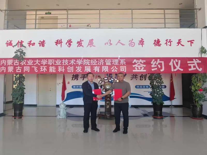 为深入贯彻《职业教育产教融合赋能提升行动实施方案(2023—2025年)》精神,落实教育部2025届高校毕业生就业“百日冲刺”行动要求,12月2日,经济管理系党总支书记张殿福、副主任康耀武带领就业指导团队赴鄂尔多斯市东胜区,与内蒙古同飞环能科创发展有限公司签订校企合作协议,开启协同育人新篇章。